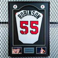 SHOWCASE INFO: Framed with 100% acid-free glass in a luxurious frame along with two pictures and the signature holder.